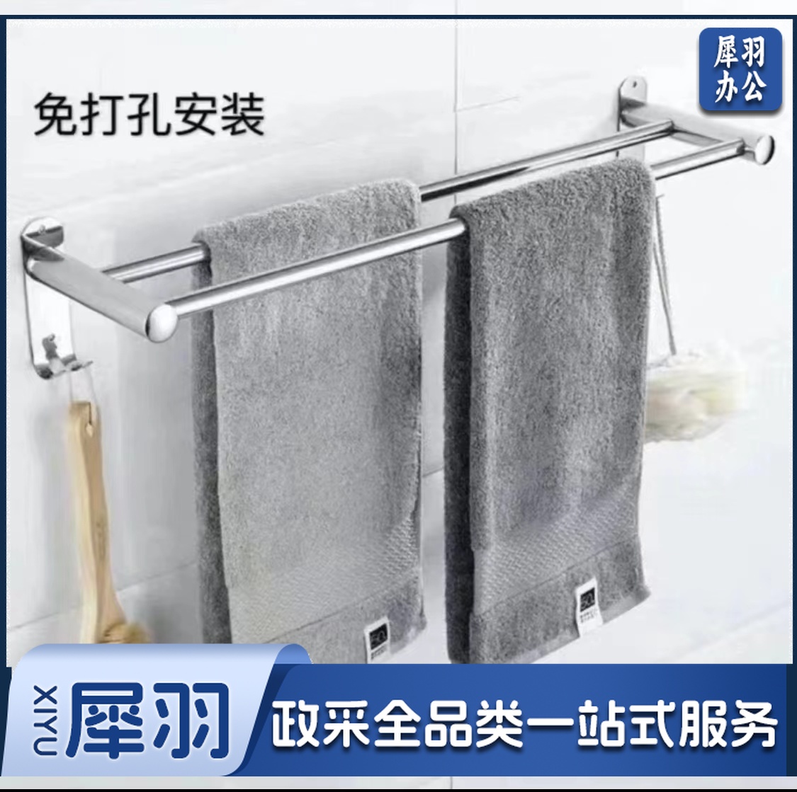 加厚304不锈钢毛巾架 免打孔卫生间毛巾架 60cm 2联毛巾架
