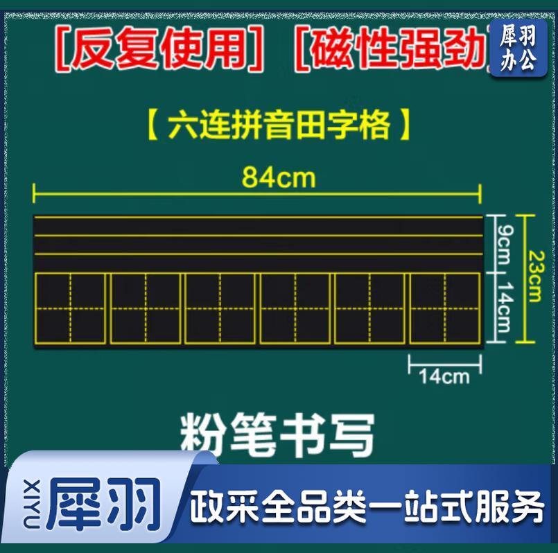 睿识教学磁性贴 六连拼音田字格 黑板贴23*84