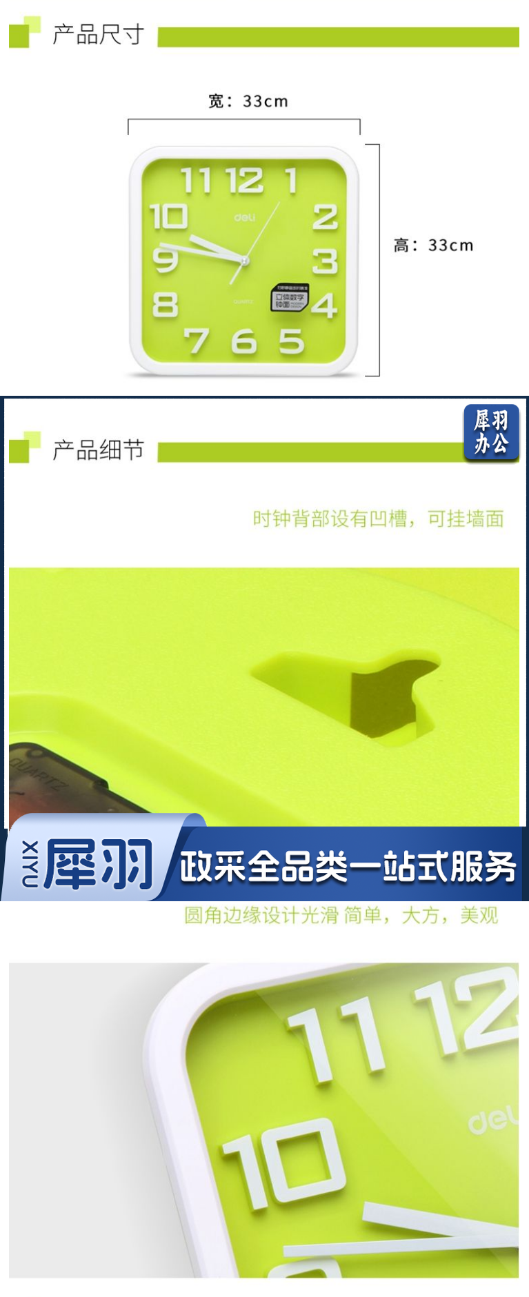 得力8949挂钟(白)(个)33x33cm(13寸)