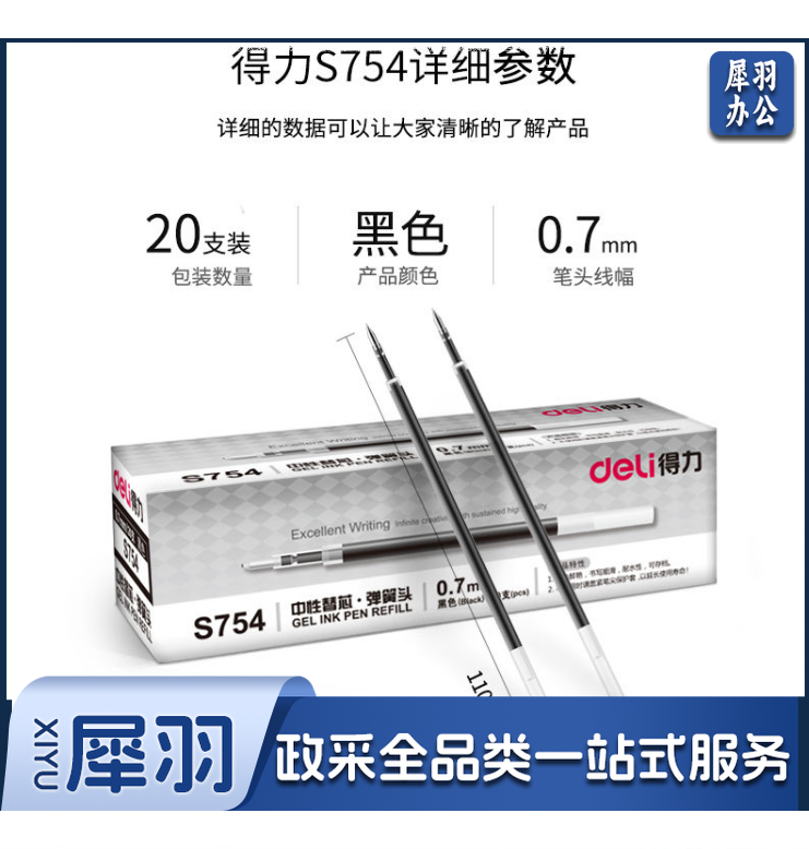 得力S754弹簧头中性笔芯0.7mm弹簧头(黑)(支)
