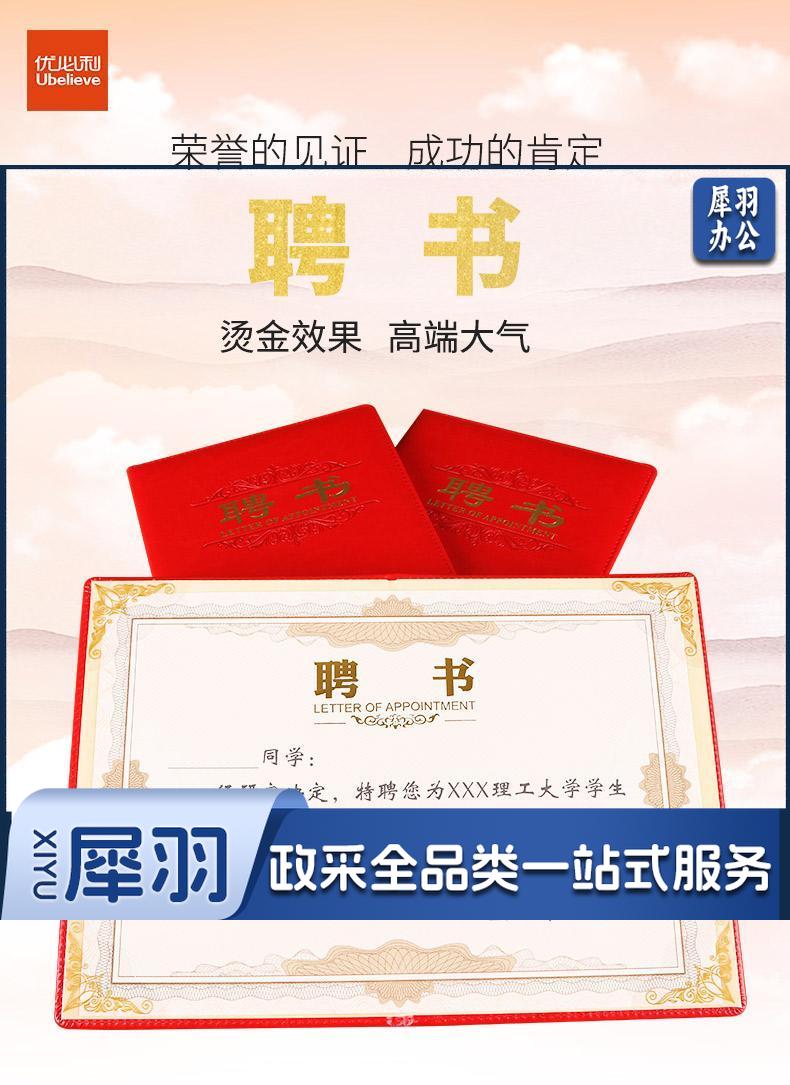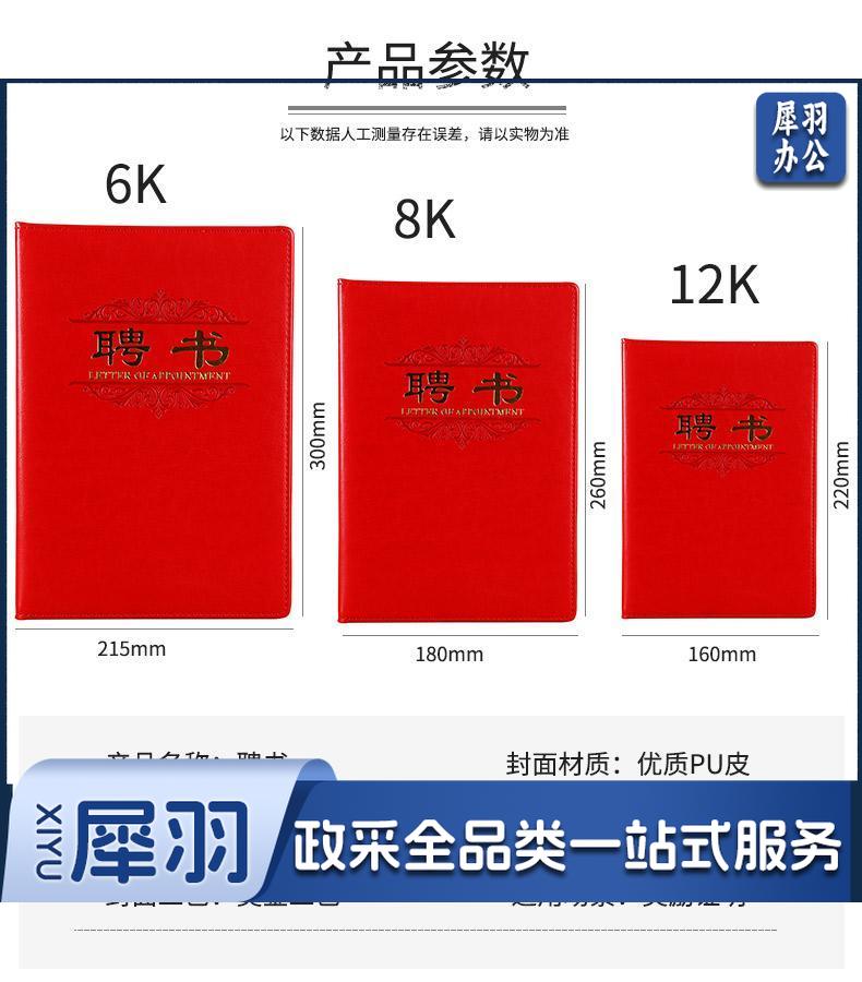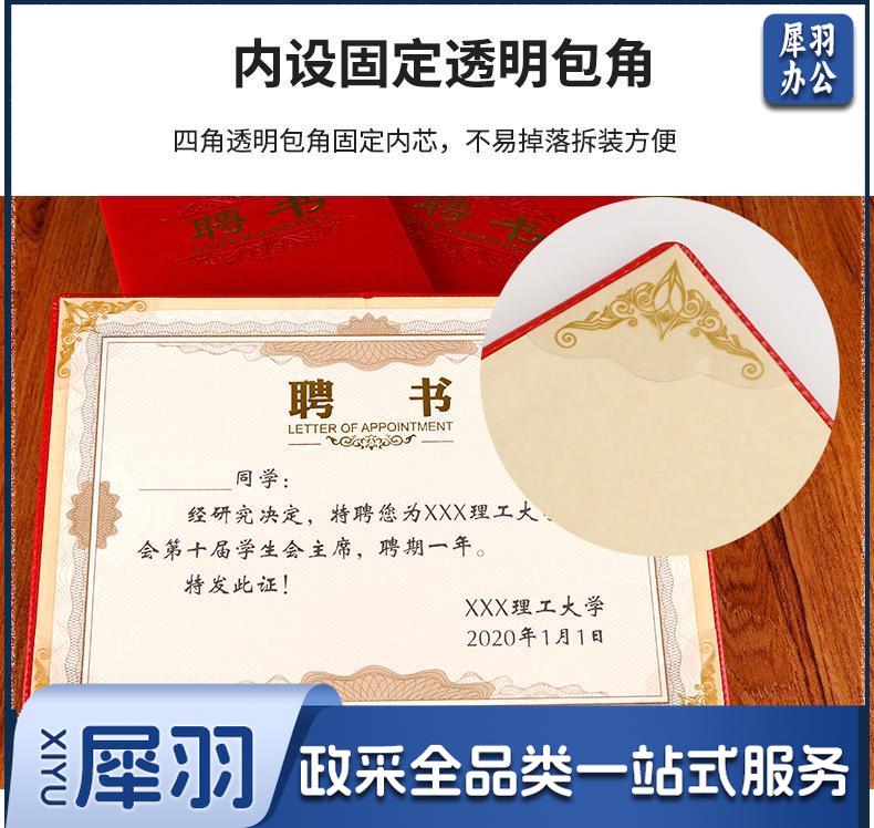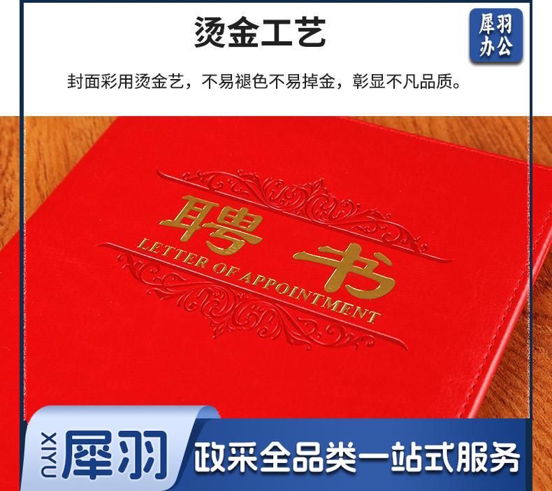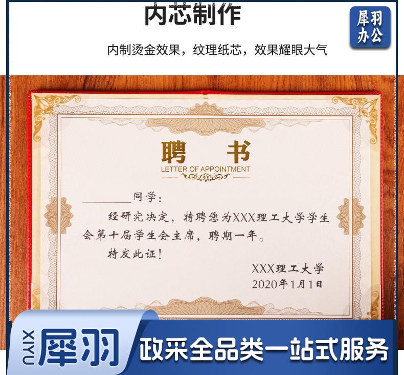 12K聘书 皮面 荣誉聘书 证书奖状附赠内芯年会员工颁奖12K聘书