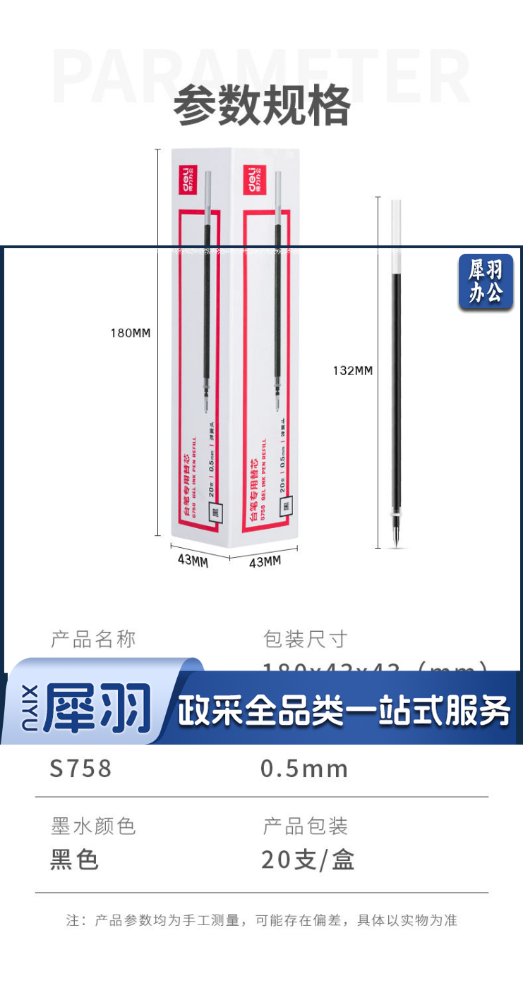 得力S758台笔专用笔芯0.5mm弹簧头(黑)(支)