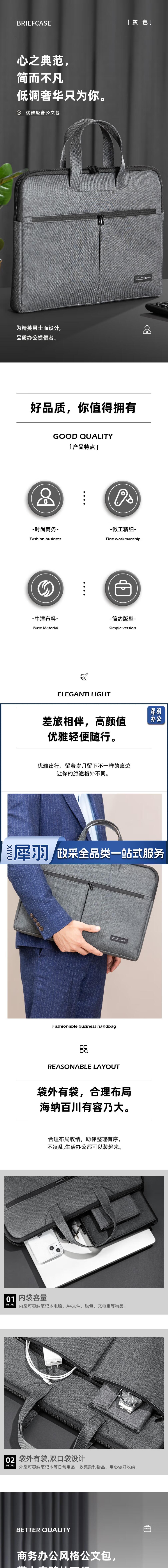 得力 BG101-45手提袋/会议包/事务包/电脑包390*290*40cm 灰
