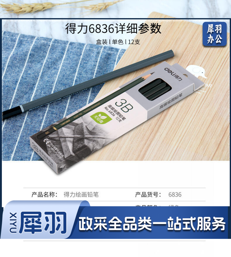 得力6836-3B高级绘图铅笔(绿色)(12支/盒)