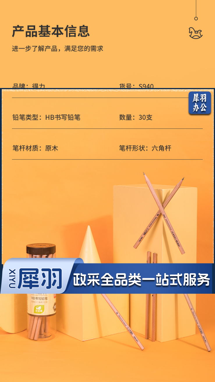 得力S940-HB书写铅笔(原木色)(30支/筒)