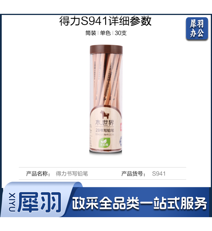 得力S941-2B书写铅笔(原木色)(30支/筒)
