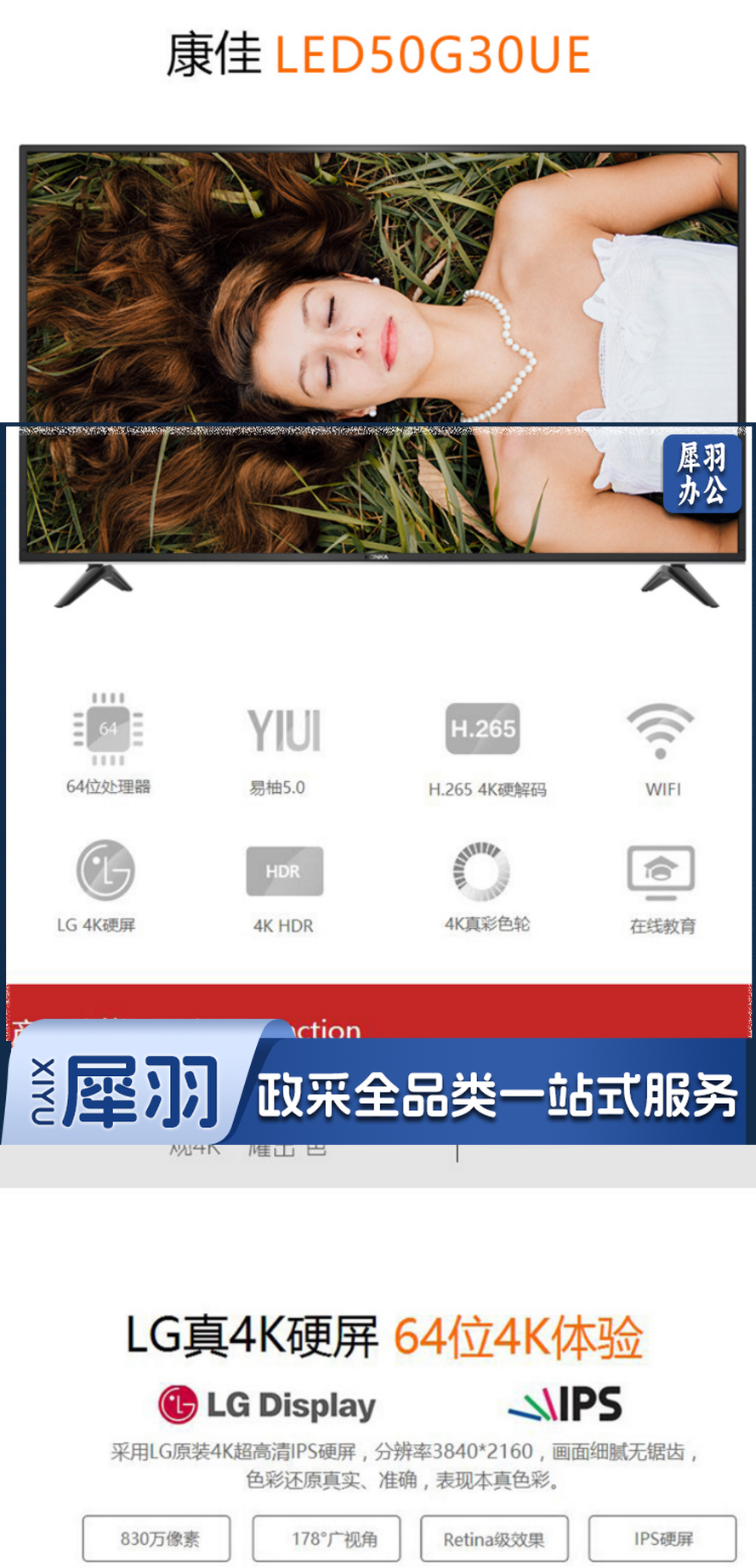 康佳(KONKA)LED50G30UE 50英寸 4K超高清智能电视 黑色 230213105213