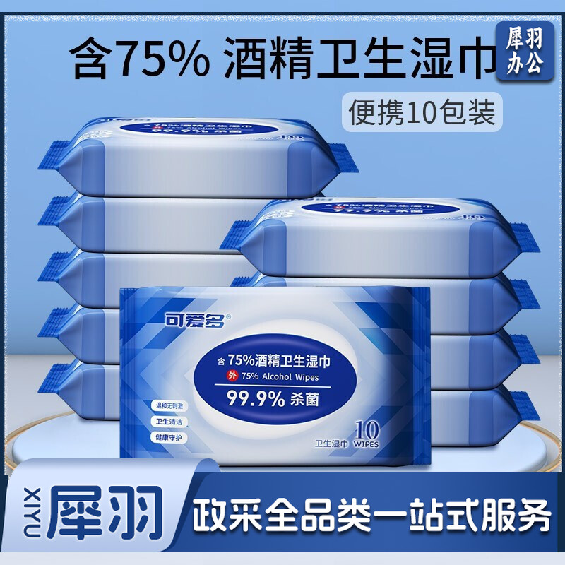 可爱多酒精湿巾消毒湿巾小包便携随身装湿巾 10片*10包.