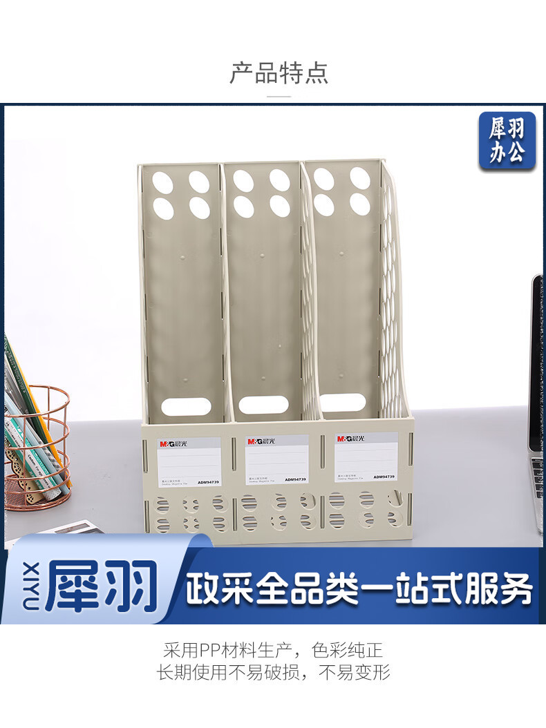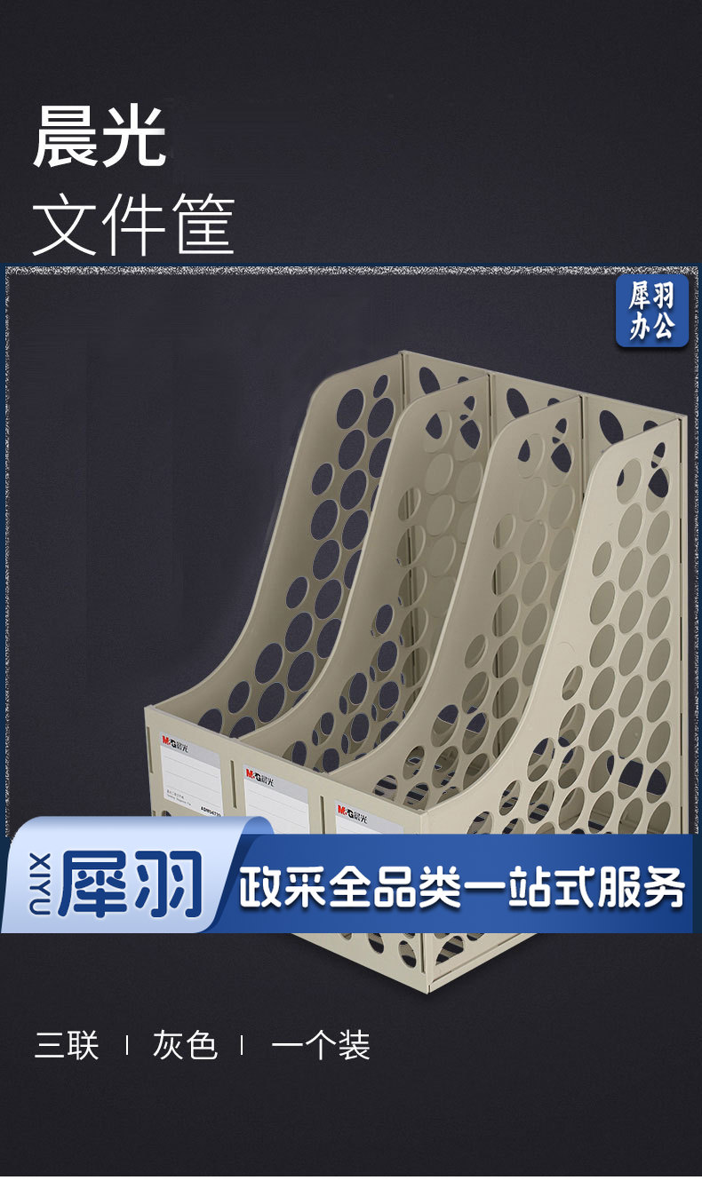 晨光(M&G)ADM94739A 三联办公文件框 加厚文件架文件筐 资料整理收纳文件栏灰色单个装