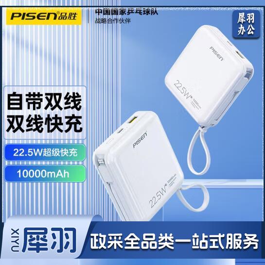 品胜 充电宝/移动电源 自带双快充线22.5W快充便携小巧10000mAh大容量户外移动电源适用iPhone14华为P70小米