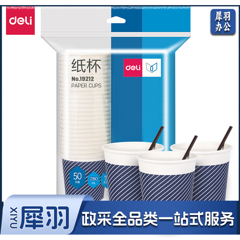 得力 19212 纸杯(280ml)(竹浆纸)(配搅拌棒)(蓝色)(50只/袋) WLSZ05311647201316
