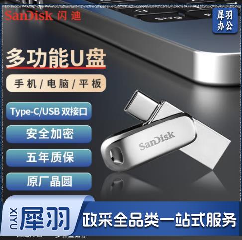 闪迪(SanDisk) 512GB Type-C USB3.1 手机电脑U盘DDC4 读速150MB/s 全金属双接口 大容量加密 办公多功能优盘