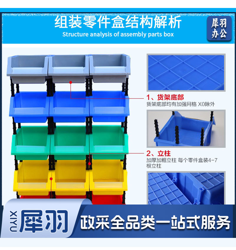 加厚斜口塑料零件盒 组合式物料箱 五金配件元件盒 螺丝盒 零件箱斜口箱加厚 加厚 斜口箱带支柱 350*210*150MM