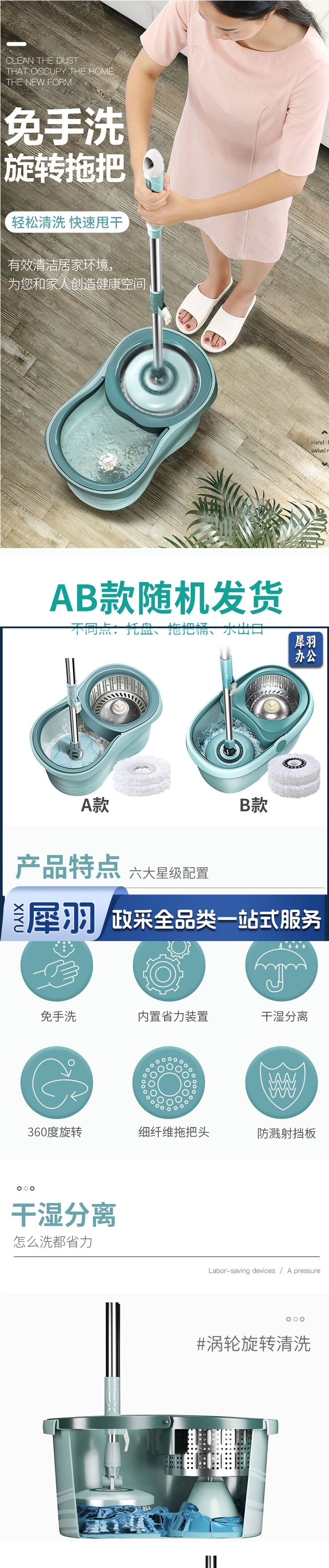 旋转拖把免手洗拖布桶懒人墩布家用手压式干湿两用瓷砖木地板拖地神器 配2个头 YZ-A105 QJ.466