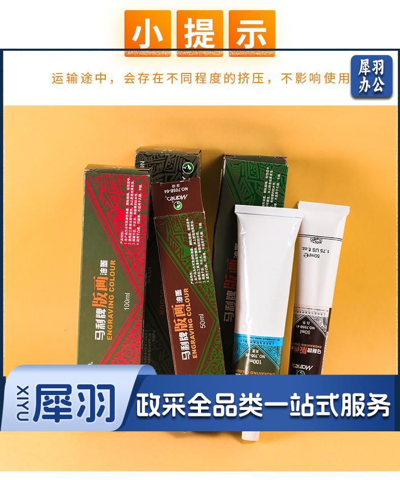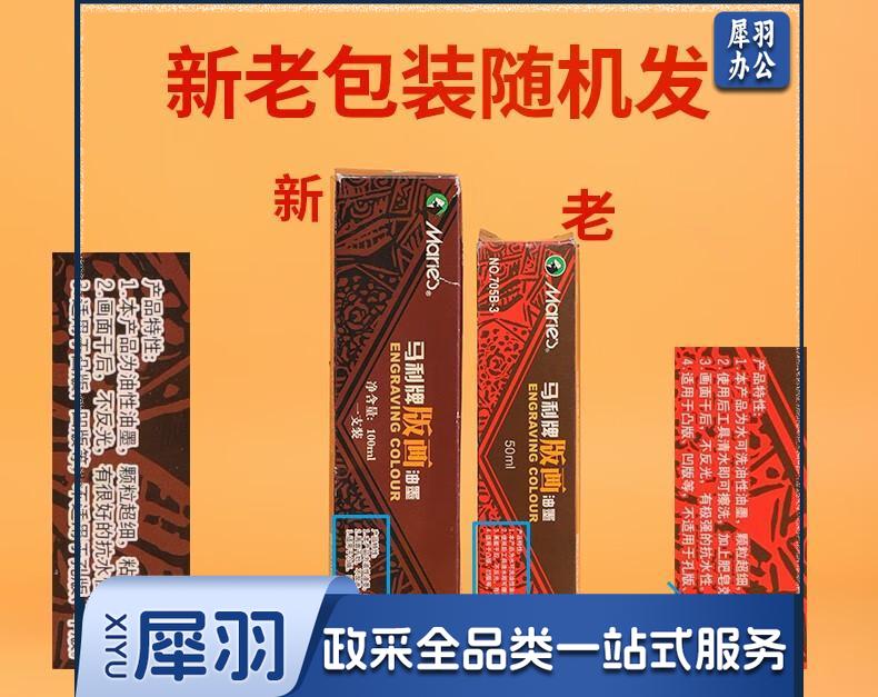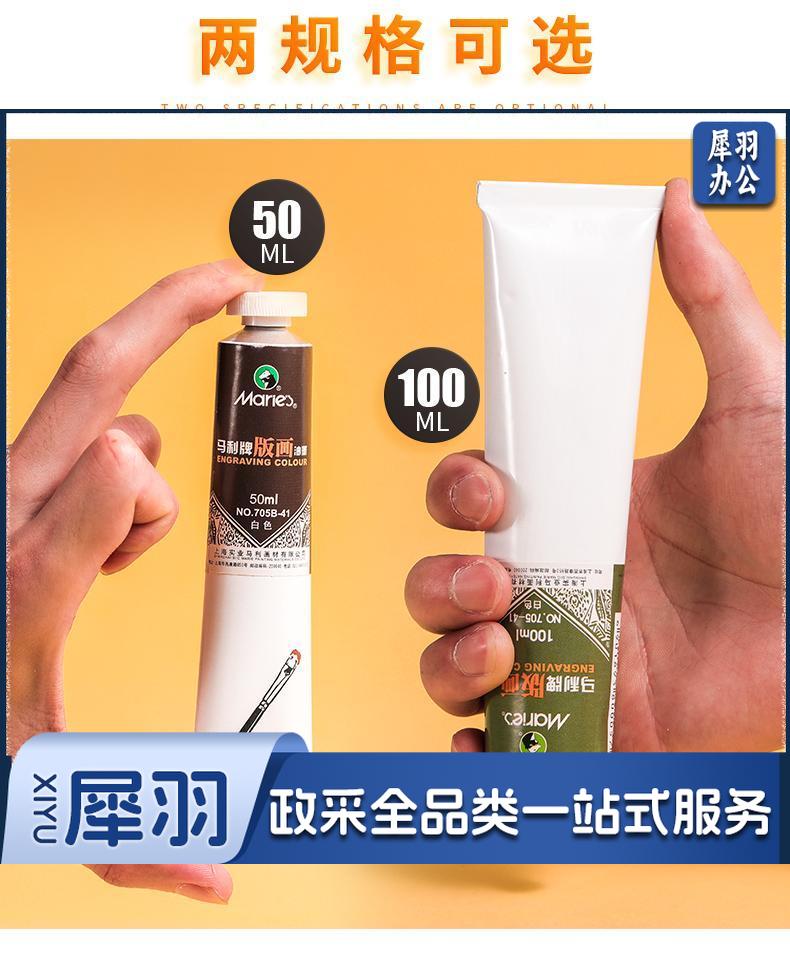 马利(Marie's) 705可水洗油性版画油墨50/100ML红/黄/蓝/绿/白/黑色版画颜料油墨 51#黑色 100ML3大红|100ML