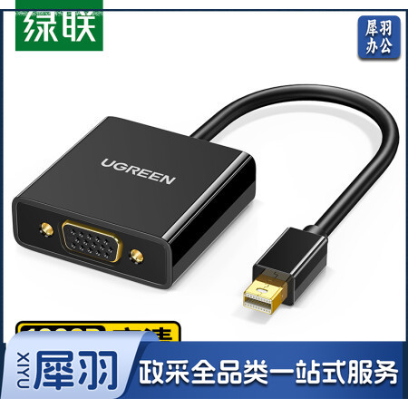绿联10459 Mini DP转VGA转换器线 高清雷电转接头适配器 适用微软苹果Mac笔记本电脑连接投影仪显示器 黑