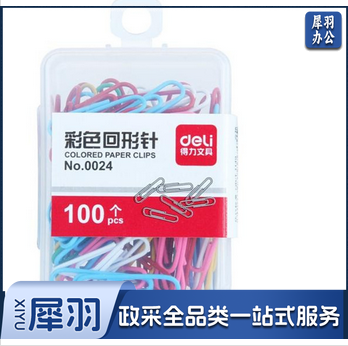 得力 0024 彩色曲别针 回形针 100个/盒.
