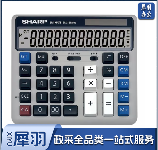 夏普(SHARP) EL-2135 Plus 灰色太阳能双电源计算器 财务会计专用大屏幕计算机器 办公用品 2135升级版