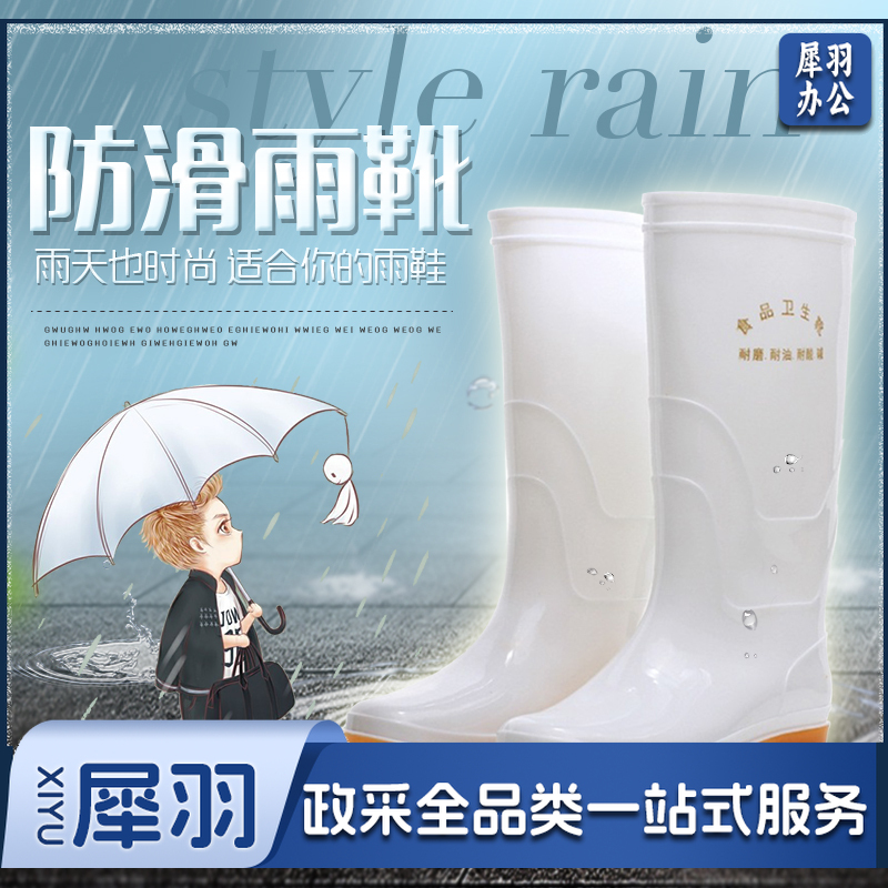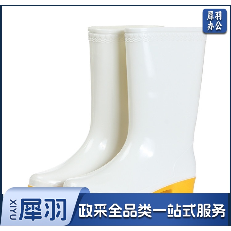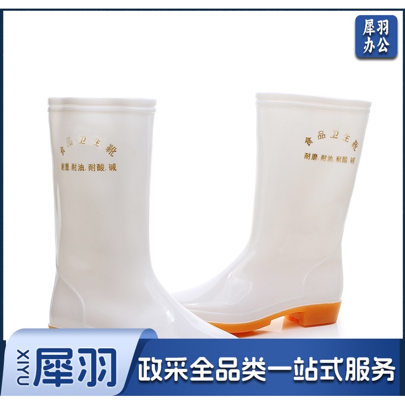 卫生白中腰雨鞋白色雨鞋防汛雨靴