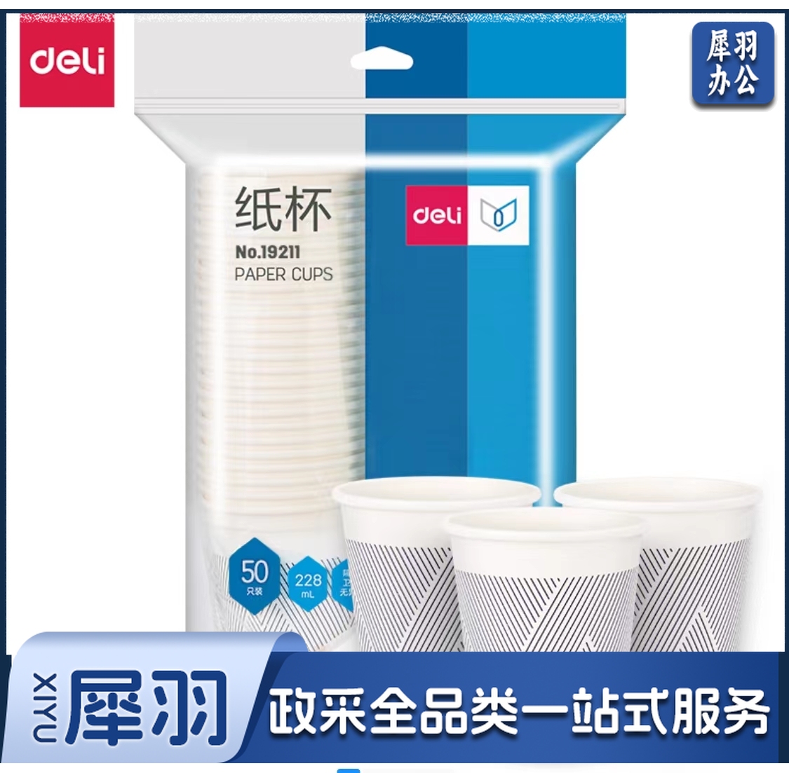 得力19211纸杯(228ml)(竹浆纸)(白色)(50只/袋)