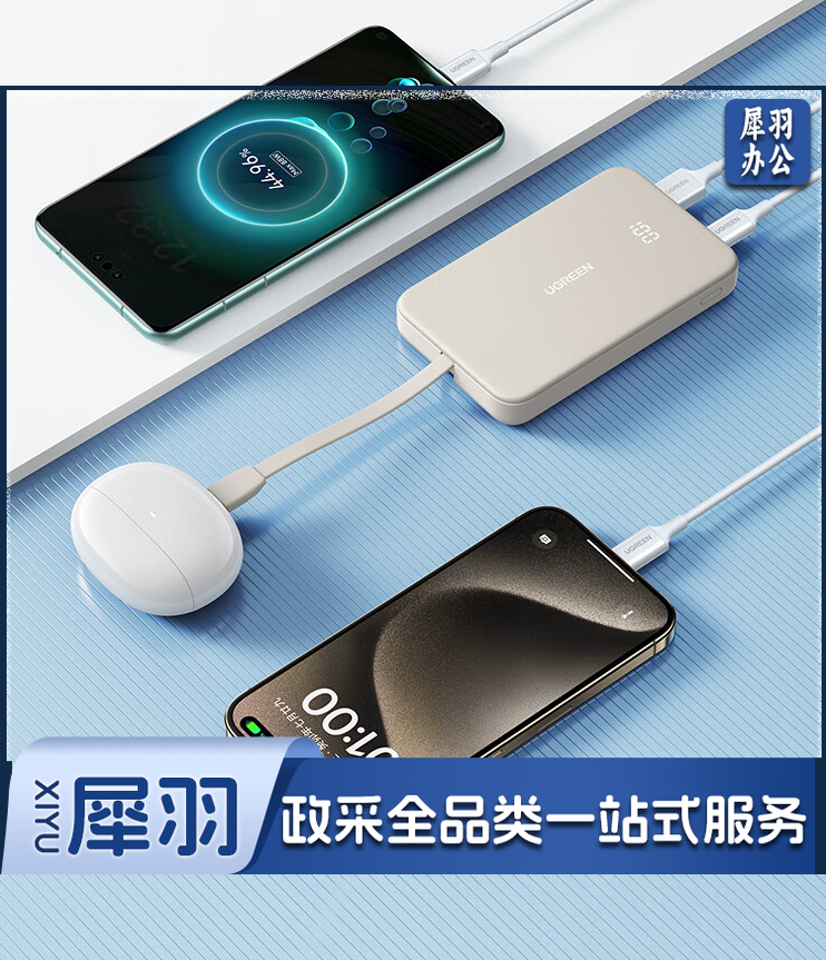 绿联 充电宝自带Type-C线20W快充 10000毫安时可上飞机小巧便携移动电源
