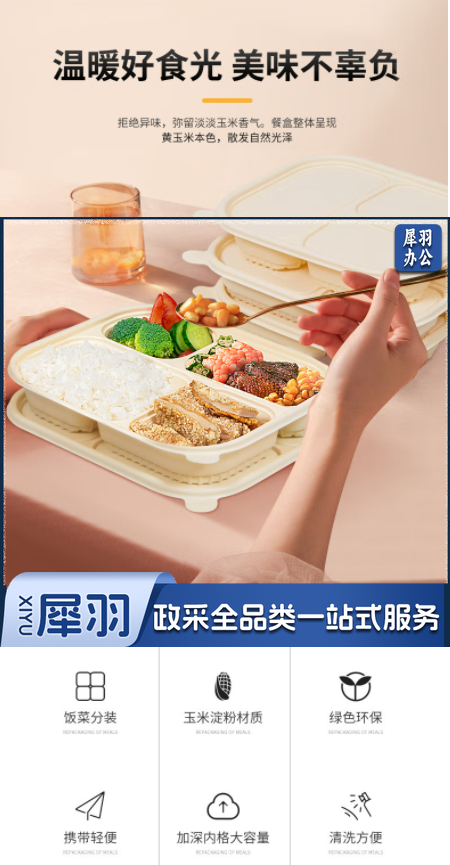可降解餐盒一次性饭盒1000ml*50套四格分隔餐盒打包盒外卖打包便当保鲜盒饭盒一次性餐具