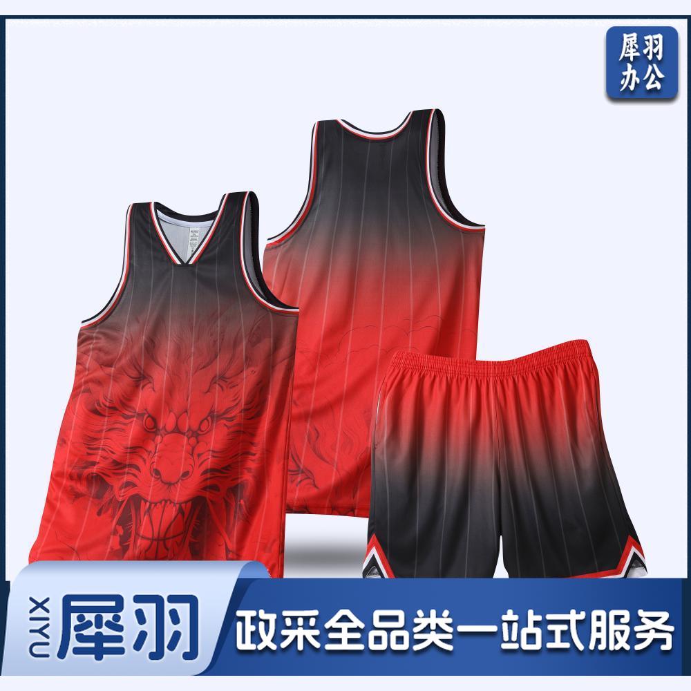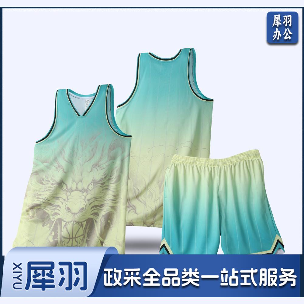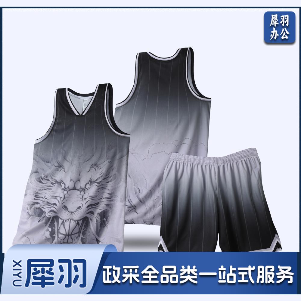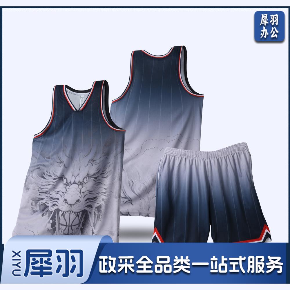 新款龙纹篮球服套装印字透气比赛训练团队龙舟服双袋
