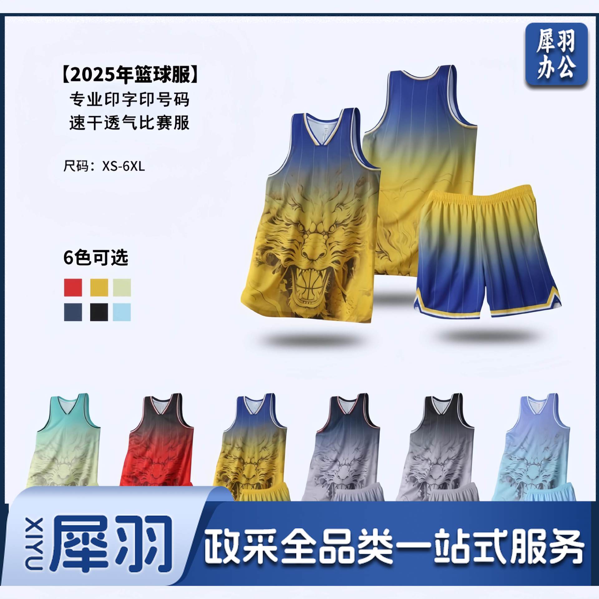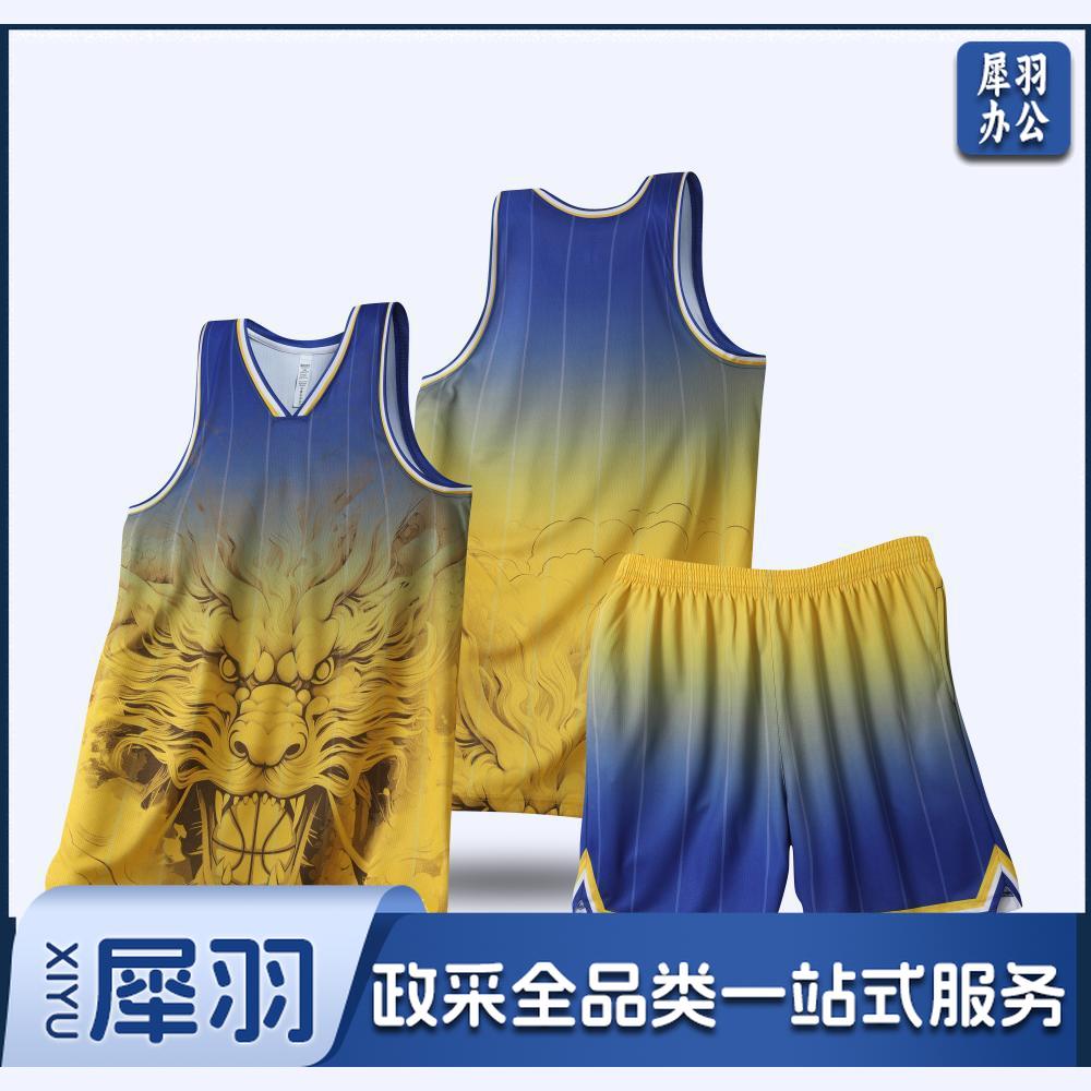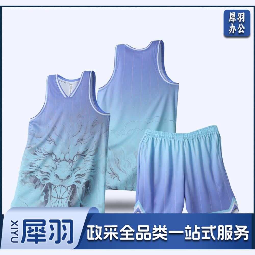 新款龙纹篮球服套装印字透气比赛训练团队龙舟服双袋