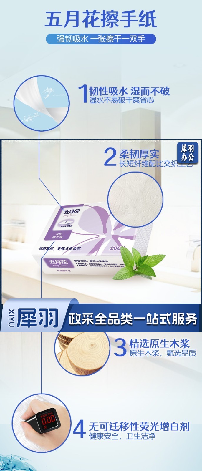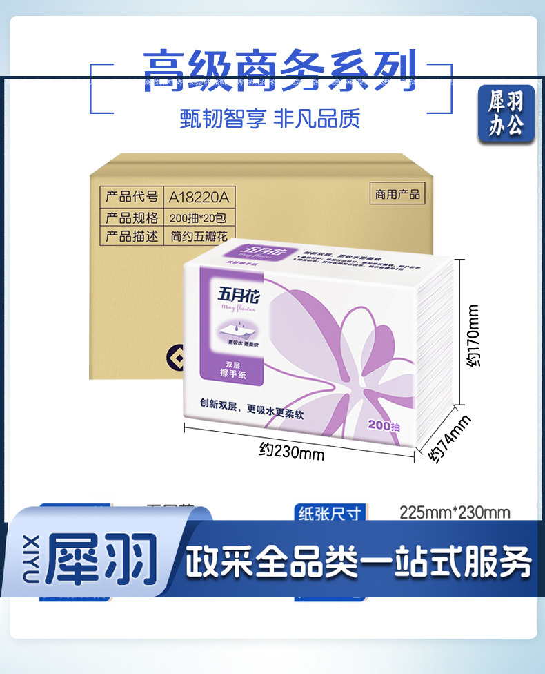 五月花(May Flower) 擦手纸 商务用纸酒店餐厅卫生间厨房纸巾2层200抽*20包(225mm*230mm)