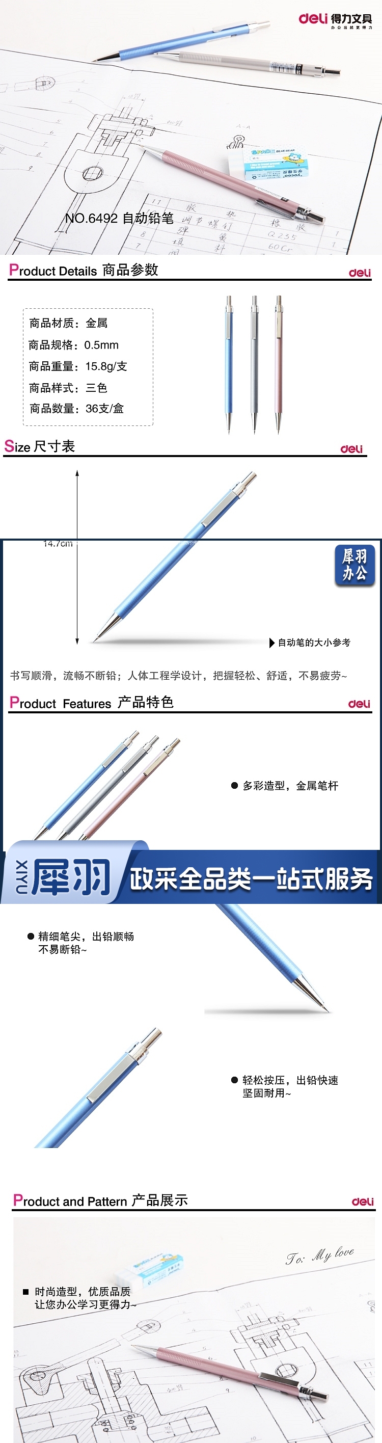 得力 6492 活动铅笔0.5mm 36支/盒 (单位:支) 混色