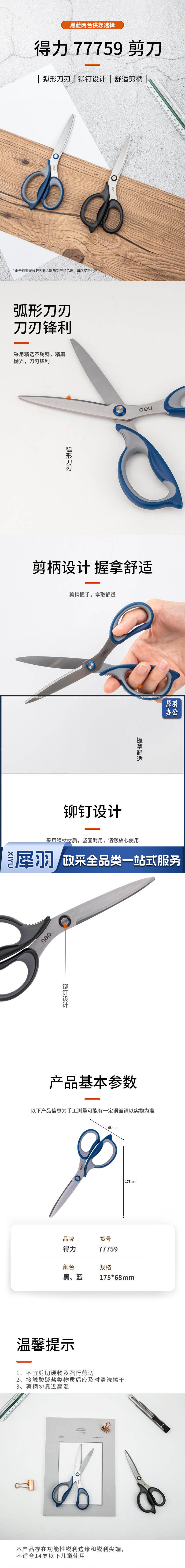 得力77759剪刀 黑色 学生剪刀 办公生活剪刀