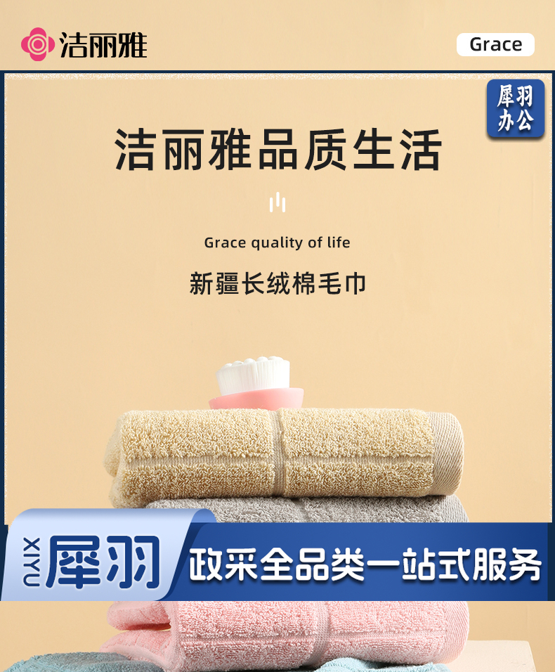 洁丽雅(Grace)毛巾单条装新疆纯棉柔软不易掉毛洗脸洗澡加厚大面巾