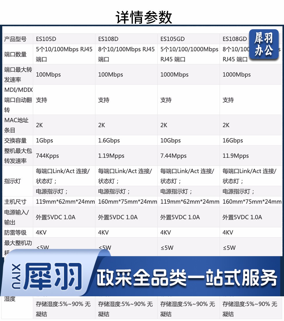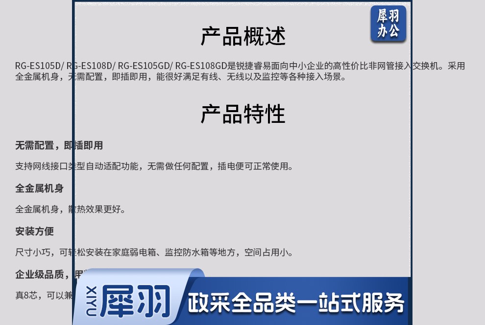 锐捷(Ruijie)RG-ES105GD 5口千兆非网管企业级交换器