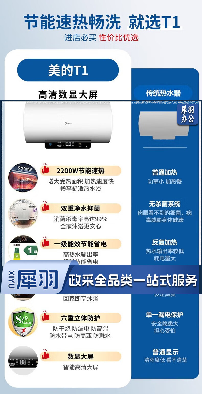 Midea美的电热水器家遥控数显节能省电美的60升机械速热+双防电墙A20MD