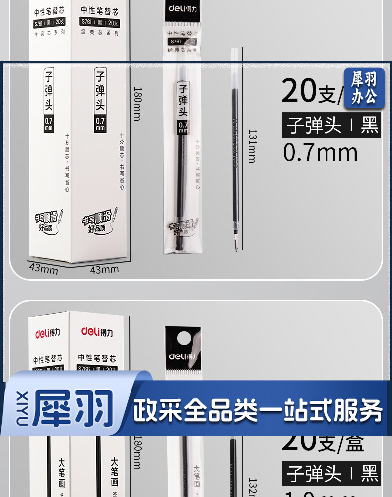 得力(deli)签字笔芯0.7mm中性笔替芯黑色子弹头水笔芯 黑色0.7mm笔芯
