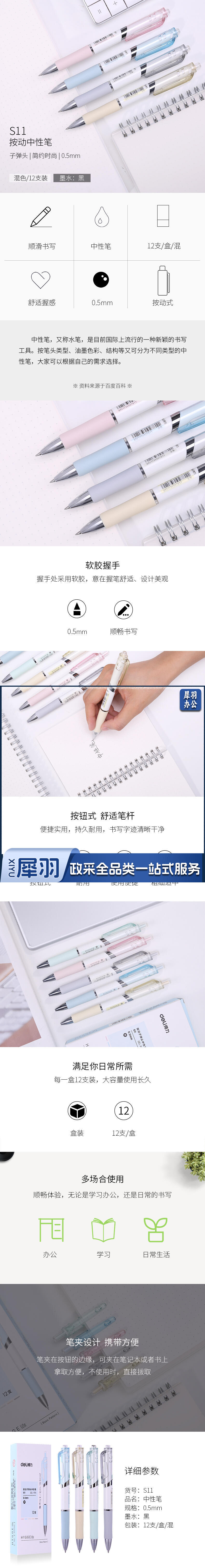 得力S11中性笔0.5mm子弹头按动头/签字笔12支/盒