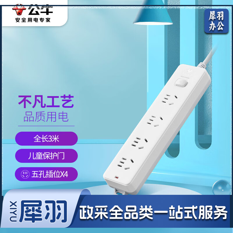 公牛(BULL) 新国标插座/插线板/插排/排插/接线板/拖线板 GN-410S 4位总控全长3米