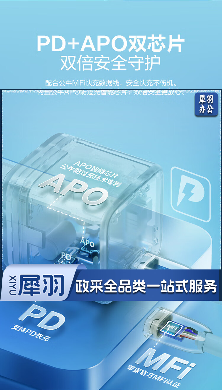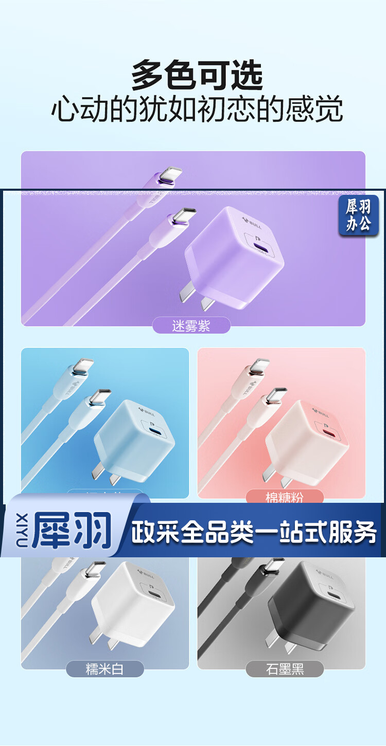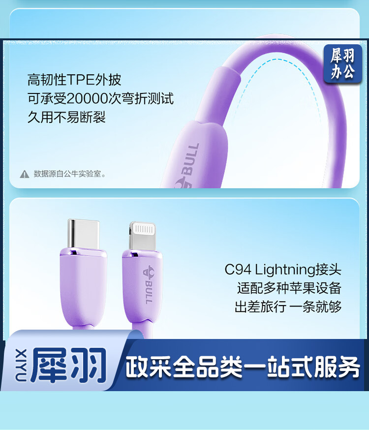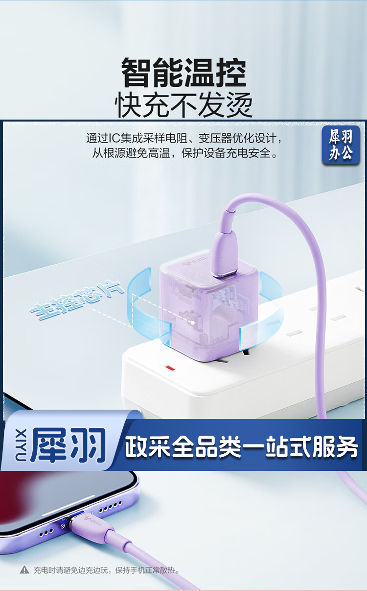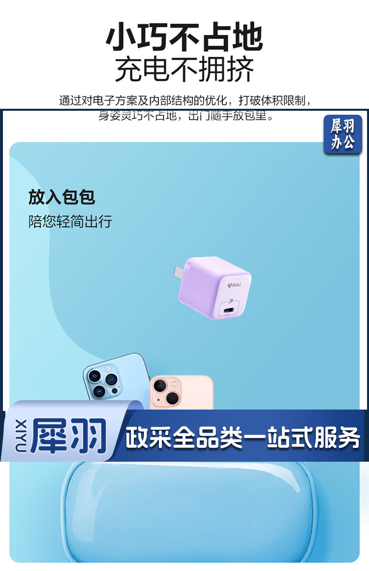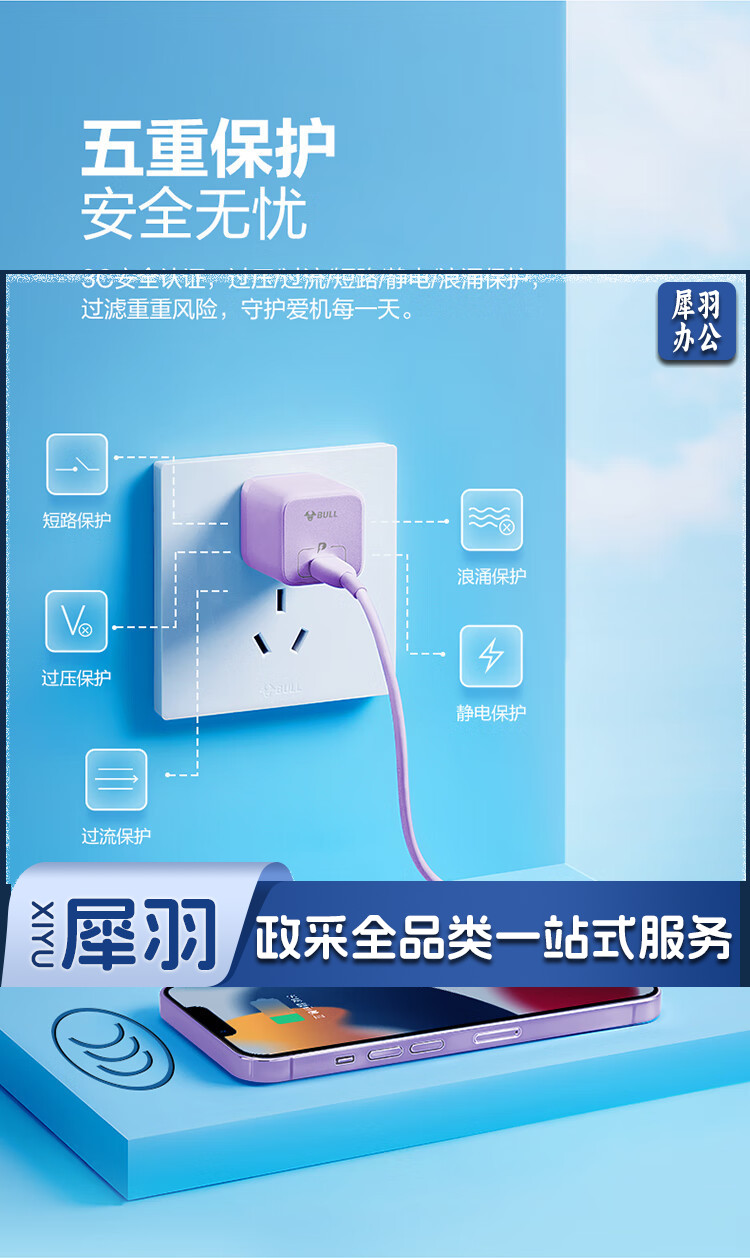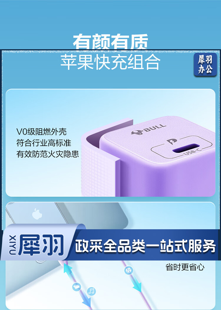 公牛充电器 苹果PD20W快充 充满自动断电 充电头 适用iPhone14/13/12proMax手机/iPadPro平板等 紫色