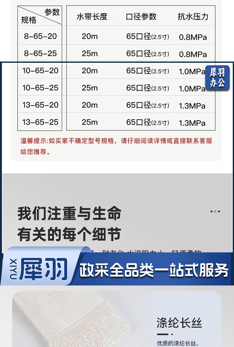 消防水带13型65mm2.5寸水管25米 防汛物资(单位:卷)