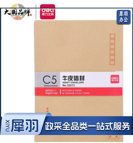 得力(deli)30张7号牛皮纸信封 邮局标准信封229*162mm33213
