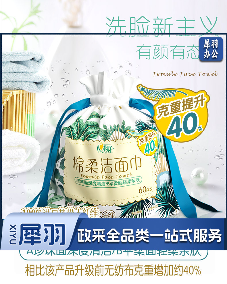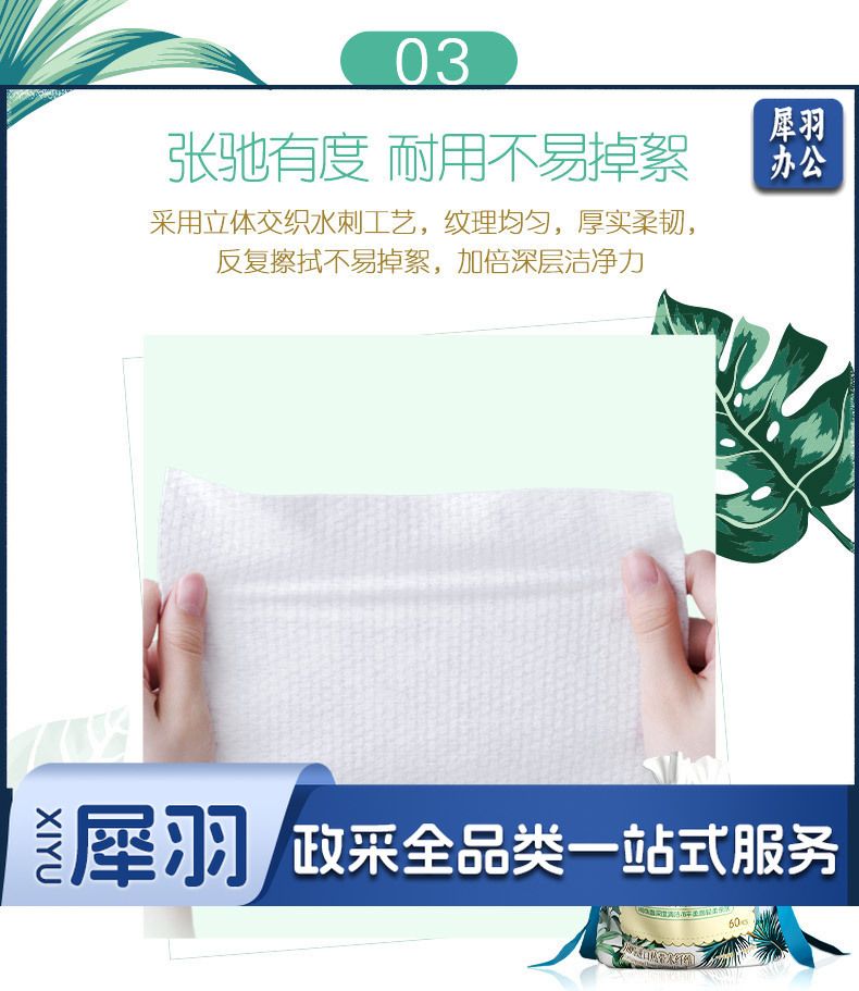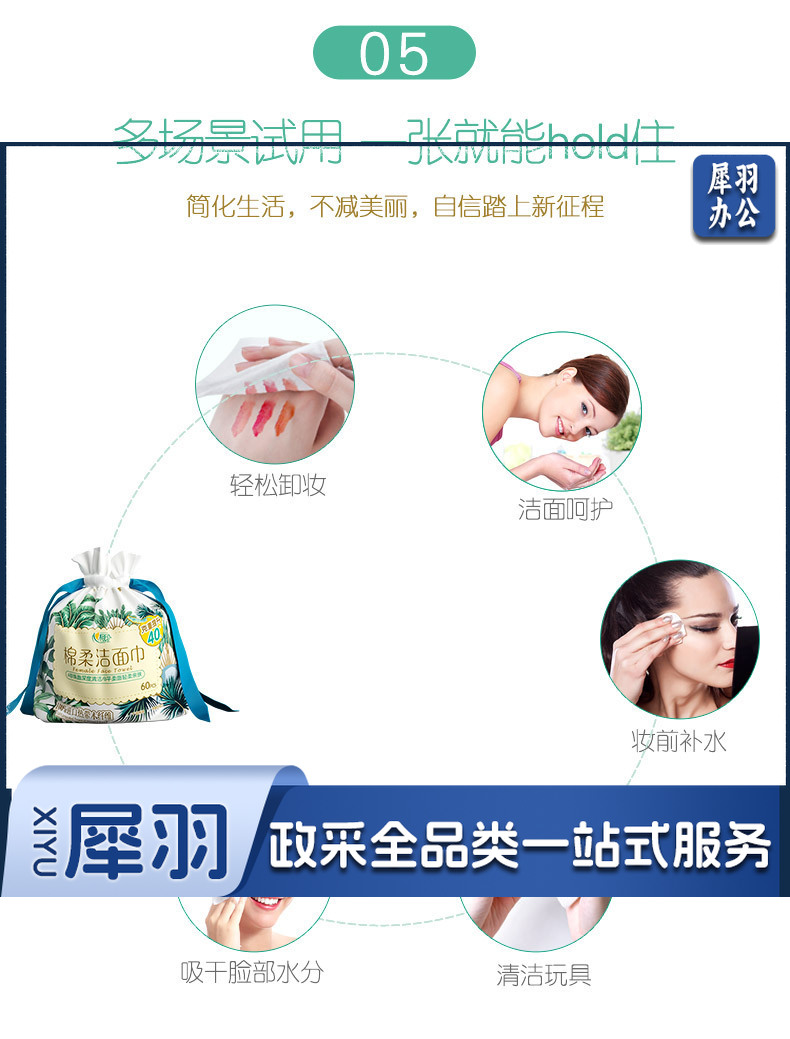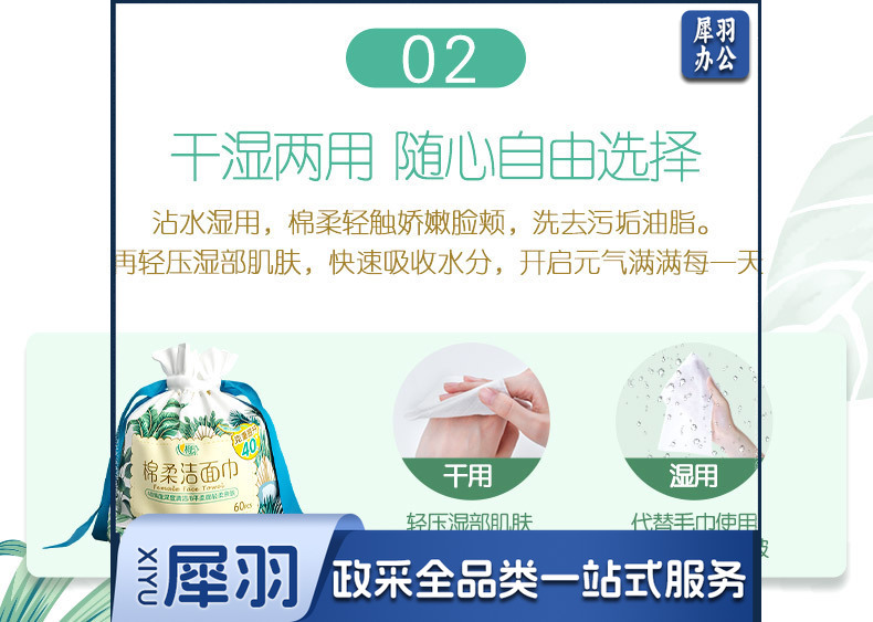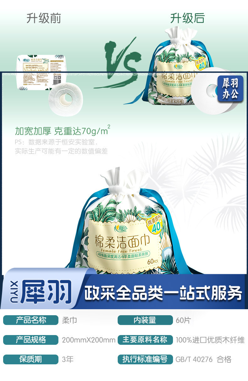 心相印棉柔系列60片装一次性洗脸巾干湿两用洁面巾卷式袋装