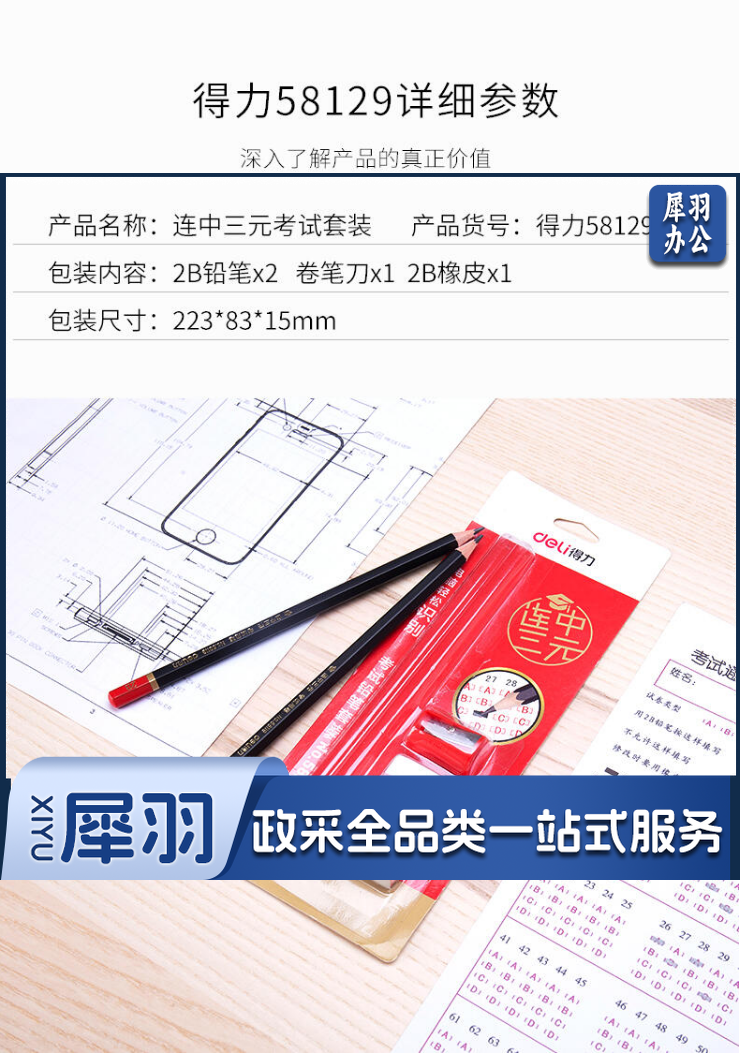 得力58129-2B考试铅笔套装(混)(2支/卡)