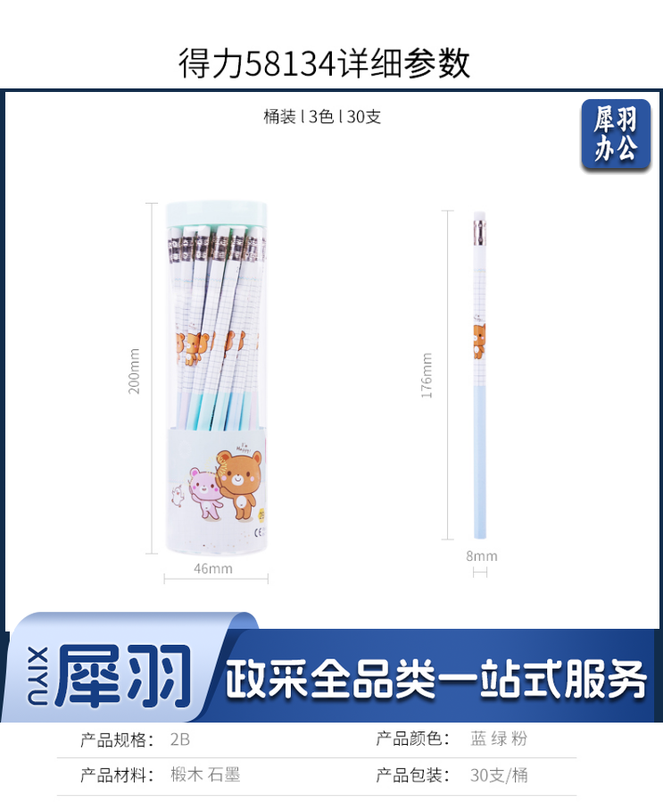 得力58134-2B卡通转印P皮头ET筒30支铅笔(混)(30支/筒)