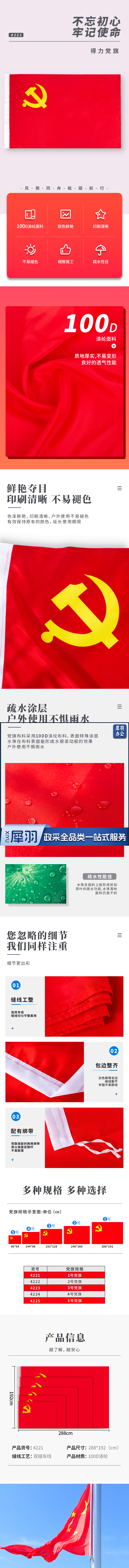 得力(deli)4222-2号党旗 涤纶材质抗晒