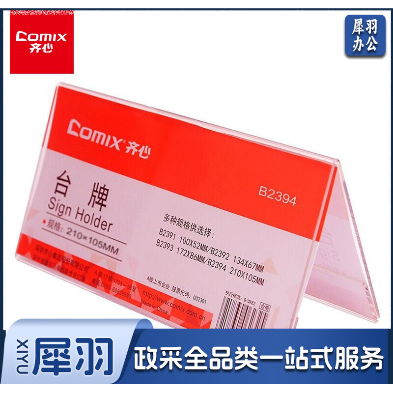齐心(Comix)桌面展示卡/桌牌 V型亚克力台卡/台牌 高透明210x105mm 10个起订
