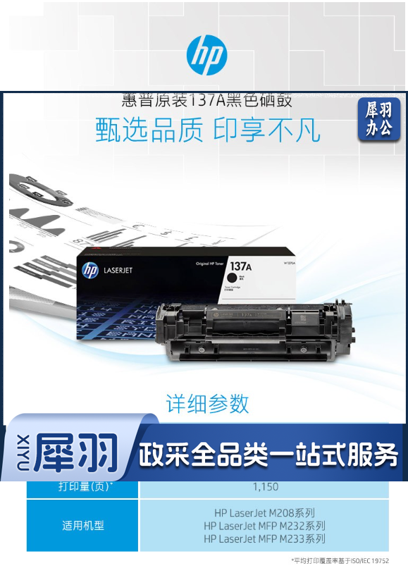惠普HP W1370A 137A 适用208dw 232dw/dwc 233dw/sdn/sdw 约1150页