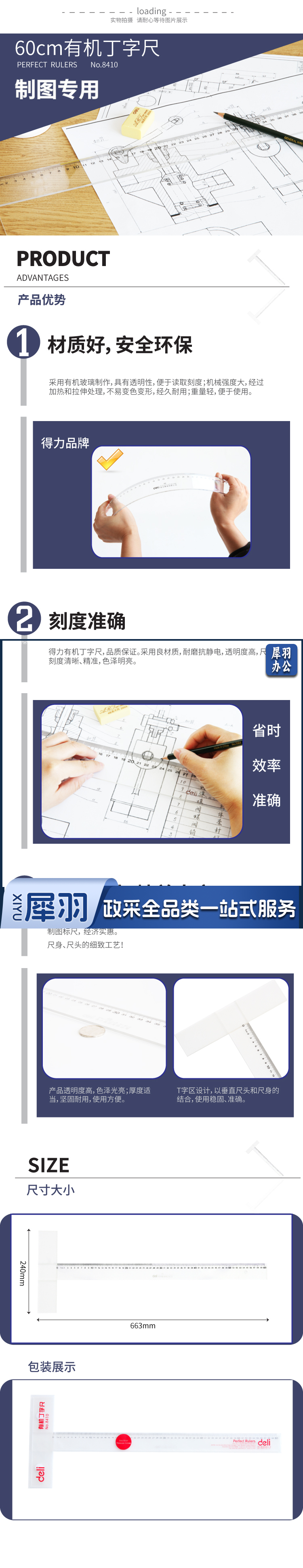 得力/deli 8410 有机丁字尺60cm(单位:只)