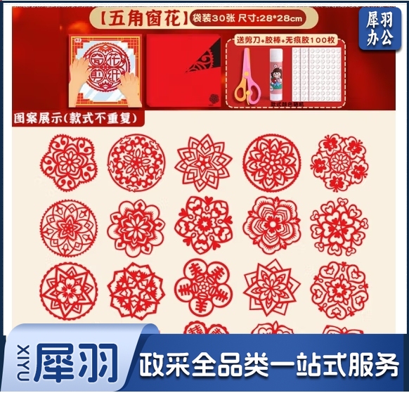 四季年华儿童新年剪纸手工折纸彩纸剪窗花专用纸幼儿园手工工具套装diy制作中国风剪纸剪刀材料包底稿图 五角窗花/30张
