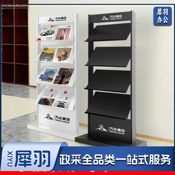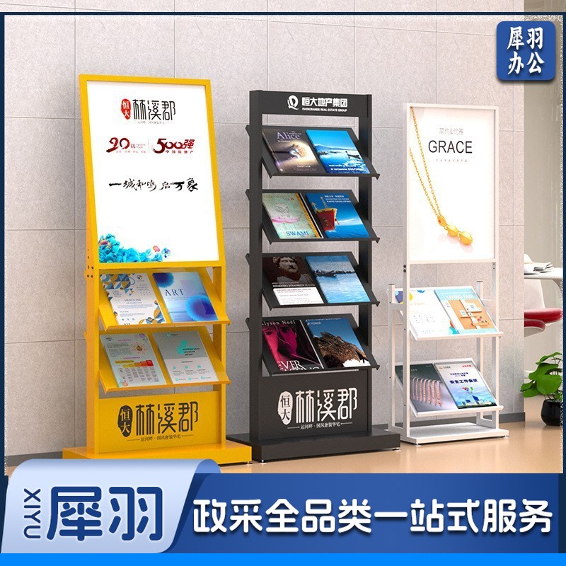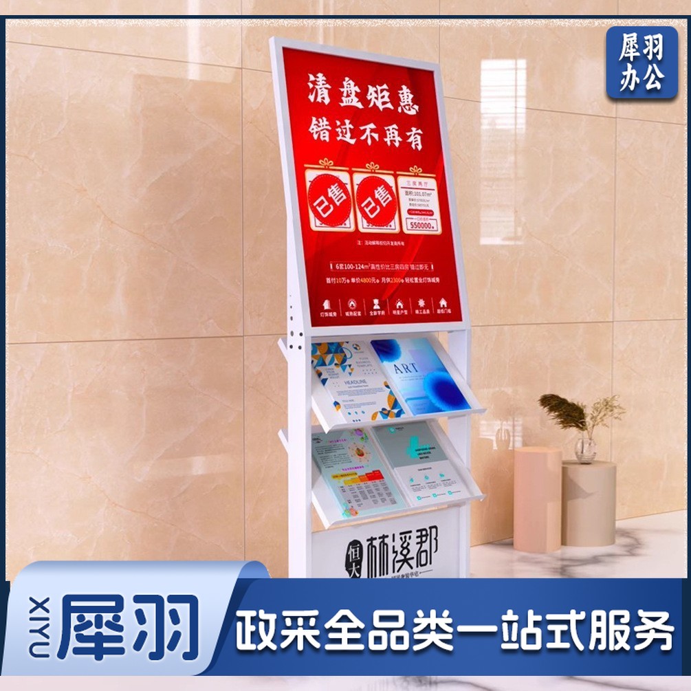 三立柱金色 117*580*370金色 落地售楼部合同活页架餐饮菜单翻页架子可以印logo资料架