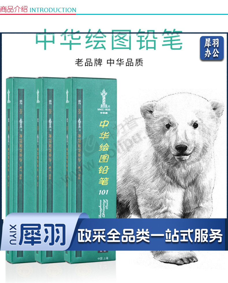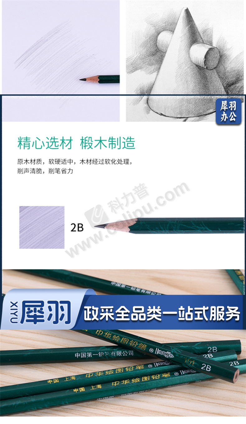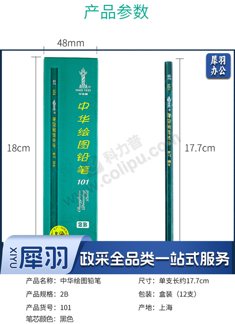 中华 ZHONG HUA 铅笔 101 2B 12支/盒 木质